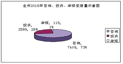 2016年我市“12315”受理消費(fèi)者咨詢、投訴、舉報10112件
