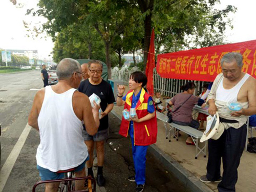 2017年8月25日是全國第一個“殘疾預(yù)防日”,殘疾風險伴隨每個人,殘疾預(yù)防與個人健康、家庭幸福、經(jīng)濟社區(qū)健康發(fā)展息息相關(guān)。市二院組織醫(yī)療志愿者在雙匯廣場進行了健康公眾宣傳和義診,發(fā)放健康宣傳手冊200余份,發(fā)放控油壺限鹽勺小禮品100余份,免費為市民測量血壓等。