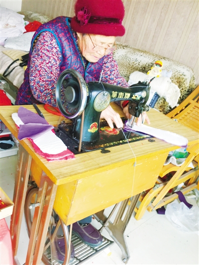 黃景蓮家里有兩臺縫紉機,一臺是她自己的,另一臺是她女兒結婚時買給女兒的陪嫁。黃景蓮笑著告訴記者,她女兒對手工活并不怎么熱乎,一直都是她在使用。