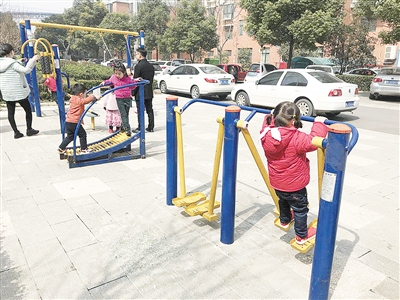 “小區(qū)里孩子太多了,天氣好的時候,經(jīng)??吹剿麄儊硗妗?rdquo;在市區(qū)人民路一小區(qū)里,正在帶孩子玩的王老伯告訴記者,小區(qū)里的健身器材旁,最常見的就是老人和孩子,老年人喜歡健身,會上去練一練,孩子也習慣上去玩,健身器材旁邊就像是個小型游樂場。