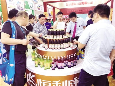 在某品牌的發(fā)酵型飲料展區(qū)前,擠滿了前來(lái)咨詢(xún)、下單的采購(gòu)商。參展商告訴記者,酵素飲品是這兩年的市場(chǎng)熱潮,致力于解決更多人的腸道問(wèn)題,起到減肥、美容、調(diào)整體質(zhì)等作用,很受消費(fèi)者青睞。在此次食博會(huì)上,他們的產(chǎn)品也受到了歡迎。