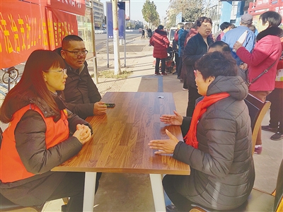 12月3日,在市區(qū)人民東路,召陵區(qū)翟莊街道東方社居委開展普法宣傳活動,邀請律師為居民解答法律問題。記者 于文博 攝