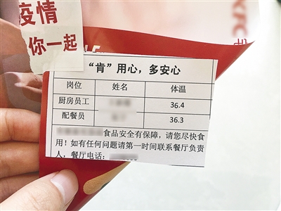 (記者 李林潤)菜品制作人是誰?配餐員是誰?他們今日的體溫是多少?近日,不少市民發(fā)現(xiàn),在打包食品的袋子上或者外賣軟件上,附有一張“安心卡”,讓人看了心里特別踏實。