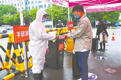 “媽媽再見,放心吧,我會(huì)照顧好自己的!”來自許昌的程佳寶同學(xué)到了學(xué)校門口后,和爸媽擁抱惜別,然后進(jìn)入測(cè)溫消毒防疫通道,進(jìn)行身份核驗(yàn)、體溫測(cè)量、行李消毒、更換口罩、手部消毒后,進(jìn)入闊別已久的校園。