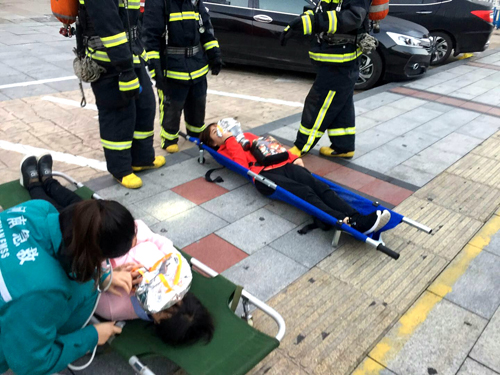 在演練總指揮發(fā)出“突發(fā)火災(zāi)應(yīng)急演練開始”的指令后,應(yīng)急救援演練拉開帷幕。市二院急診科接到火災(zāi)報(bào)警電話后,迅速啟動(dòng)突發(fā)事件醫(yī)療急救應(yīng)急預(yù)案,進(jìn)入應(yīng)急狀態(tài)。急診科主任李劍穎帶領(lǐng)住院醫(yī)師張蓓蓓、主管護(hù)師張靜以及救護(hù)車司機(jī)馮河林接到調(diào)度電話立即帶著急救藥品、器械,趕赴現(xiàn)場。在消防隊(duì)員將傷員轉(zhuǎn)移到安全地帶后,迅速檢查了3名傷員的受傷情況,按照檢傷分類要求,進(jìn)行現(xiàn)場救治,快速給予傷員吸氧,并安撫受傷人員。隨后,傷者被送上救護(hù)車,安全轉(zhuǎn)運(yùn)到醫(yī)院進(jìn)一步治療。7時(shí)10分,整場演練順利結(jié)束。