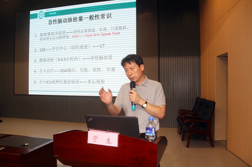 隨后,鄭州大學(xué)第一附屬醫(yī)院心血管內(nèi)科專家李凌教授熱情洋溢地講述了《急性左心衰診治進(jìn)展》,并結(jié)合自身經(jīng)驗(yàn)及最新心衰指南,深入淺出地介紹了“急性左心衰”的診療思路,詳細(xì)地論述了該病應(yīng)如何去治?如何去防。神經(jīng)介入科專家管生教授幽默風(fēng)趣地從神經(jīng)介入方向介紹了《心血管醫(yī)生應(yīng)該了解的腦血管那些事》,并提出了“心腦同診、心腦同治”的新思路,為我市心腦血管的發(fā)展及防治提供了新的借鑒與思考。最后,心血管內(nèi)科專家陶海龍教授細(xì)致、全面地介紹了“房顫的規(guī)范化治療”,他從“歷年指南房顫的治療要點(diǎn)、經(jīng)典病例及房顫的介入治療”等方面闡釋了相關(guān)問(wèn)題,為大家對(duì)房顫的治療及卒中的預(yù)防提供了新的思考。