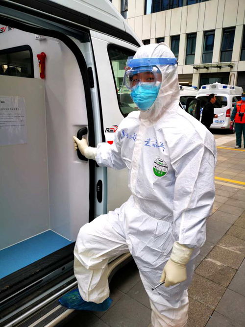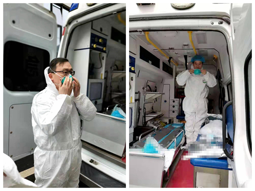 市二院醫(yī)療急救運(yùn)轉(zhuǎn)隊是2月5號到達(dá)武漢,經(jīng)過兩天的緊張集訓(xùn),今天他們就要開始接到首次急救運(yùn)轉(zhuǎn)任務(wù)。“第一次經(jīng)歷如此重大的戰(zhàn)斗,會緊張、有壓力。”市二院轉(zhuǎn)運(yùn)醫(yī)療隊的隊員們深知,每一次轉(zhuǎn)送任務(wù)就是離危險更近一步,但沒有一個人打退堂鼓,大家相互鼓勵打氣,克服了許多難以想像的困難。執(zhí)行任務(wù),穿上密不透氣的防護(hù)服,一穿就是幾個小時,衣服濕了又干干了又濕。因為怕上廁所,不敢喝水,回來后要經(jīng)過嚴(yán)格的車輛和個人消毒處理,忙活完,大家累得都吃不下飯。