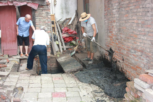 ▲市住建局分包“三無(wú)樓院”治理實(shí)景。(為樓院清理疏通常年淤堵的化糞池)