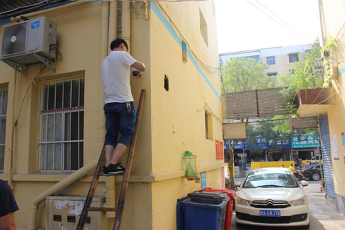 ▲市住建局分包“三無(wú)樓院”治理實(shí)景。(為樓院安裝智能監(jiān)控系統(tǒng))