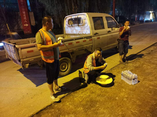 在9月8日早晨7:30左右,在這個時間段,很多上班人員才剛開始前往工作的路上,而他們已經(jīng)工作了近一個多小時,和往常一樣皇十線項目部人員從施工現(xiàn)場回來準備洗手吃早飯,準備開飯的時候,張曉東對同事說:“我這會兒吃不下,我等會兒再吃”,說著就要起身邁步走,剛走兩步“撲通”一聲,是張曉東倒地的聲音,其他同事聽到聲響趕忙跑過去詢問情況,并小心翼翼的把張曉東攙扶起來,“我這會兒不知道怎么了,忽然就感覺雙腿沒有了力氣 ”張曉東說著就要邁腿向前走一步,工作三十余載的鄭民軍經(jīng)理聽到這話后立馬明白了是怎么一回事兒,急忙安排其他人開車送張曉東去醫(yī)院,鄭經(jīng)理對其他同事說:“曉東這種現(xiàn)象在我們施工人員中曾出現(xiàn)過,在2013年S241施工時安衛(wèi)東也是因為天氣炎熱出汗太多,加上體力透支,導(dǎo)致身體出現(xiàn)虛脫、麻木等現(xiàn)象”,雖然大家對張曉東的情況比較擔心,但是,大家并沒有因此去浪費時間,而是調(diào)整好心態(tài)著急忙慌的往嘴里扒拉早飯,想著在保證質(zhì)量的同時緊趕施工進度,盡快投入到“熱火朝天”的工作中去。每分每秒對他們來說都非常珍貴,因為他們的信仰就是以“鋪路石”精神建設(shè)人民滿意公路!