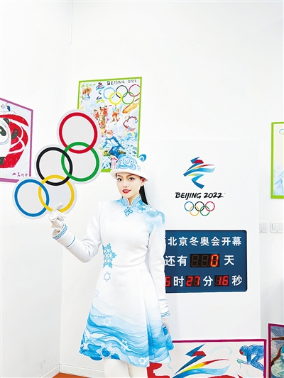 2月4日,張曦丹在北京冬奧會開幕倒計時牌前拍照。照片由受訪者提供