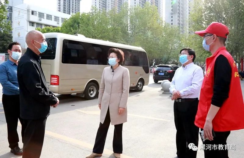常英敏在漯河高中察看疫情防控工作,王江濤、甘德建、周英民陪同