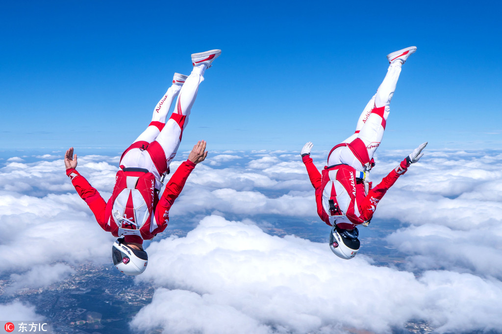 云端起舞!雙人跳傘演繹華麗高空雙人舞