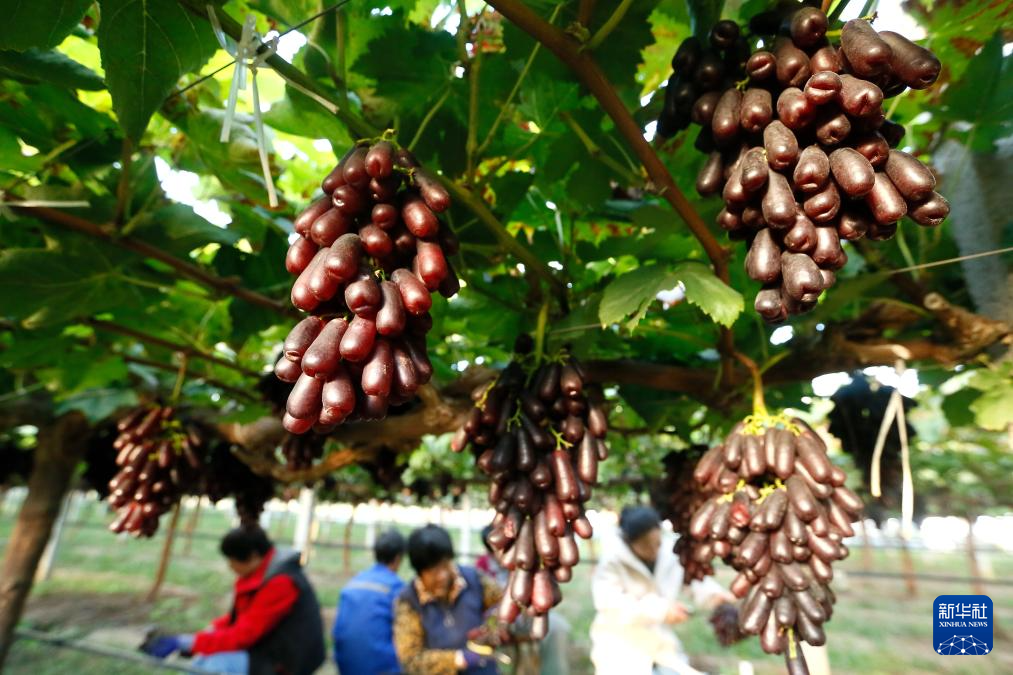 10月4日,山東省青島市即墨區(qū)金口鎮(zhèn)一個葡萄種植基地的果農(nóng)在分揀葡萄。