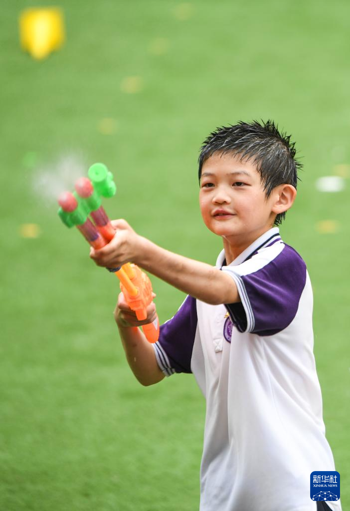 5月30日,重慶兩江新區(qū)巴蜀學校學生在“水趣童樂”活動中玩水槍。