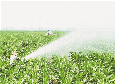 7月8日,召陵區(qū)老窩鎮(zhèn)楊莊村田間,村民在給玉米澆水。近期,我市持續(xù)高溫少雨,農(nóng)田遭受不同程度旱情。目前,正值玉米生長關(guān)鍵時(shí)期,我市積極組織各方力量澆水抗旱。