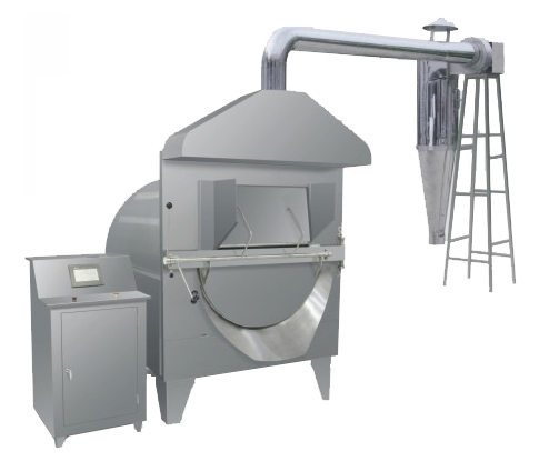 本機采用PLC+觸摸屏控制,數(shù)控化生產(chǎn),可設(shè)定及存貯溫度、轉(zhuǎn)速、時間等工藝參數(shù)。采用特殊滾輪支撐裝置支撐炒藥滾筒,滾筒轉(zhuǎn)動平穩(wěn),電磁直接加熱滾筒,升溫迅速。滾筒外加保溫層,測溫探頭可直接測量滾筒溫度。本機具有加熱速度快.熱效率高之優(yōu)點,符合GMP要求。